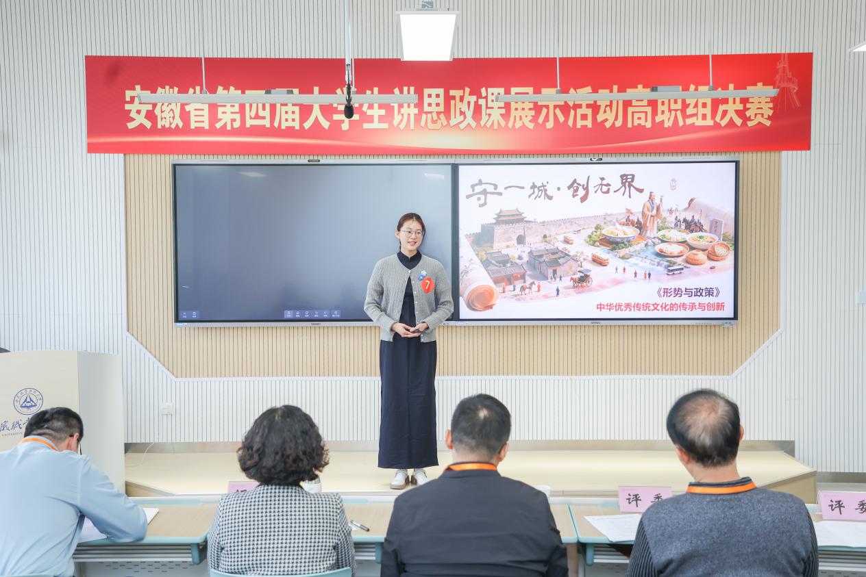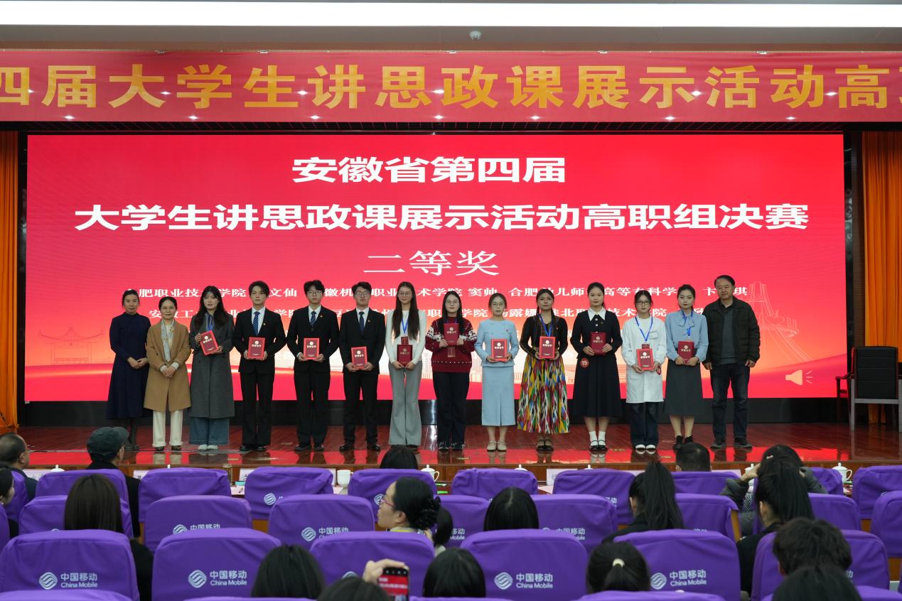 本次决赛汇聚了安徽省近30所高职院校的36支队伍同台竞技,竞争异常激烈。经过多轮紧张角逐,我校参赛团队凭借扎实的理论功底、新颖的教学设计和生动的现场演绎脱颖而出,由莫燕子、严文竹老师指导,蒋晶晶团队主讲的《中华优秀传统文化的传承与创新》荣获二等奖。参赛选手以青年视角解读时代命题,用质朴情感传递理想信念,以鲜活表达激活理论魅力,充分展现了大学生昂扬向上的精神风貌与坚定的理想信念,赛出了我校学子的思想高度与青春风采。